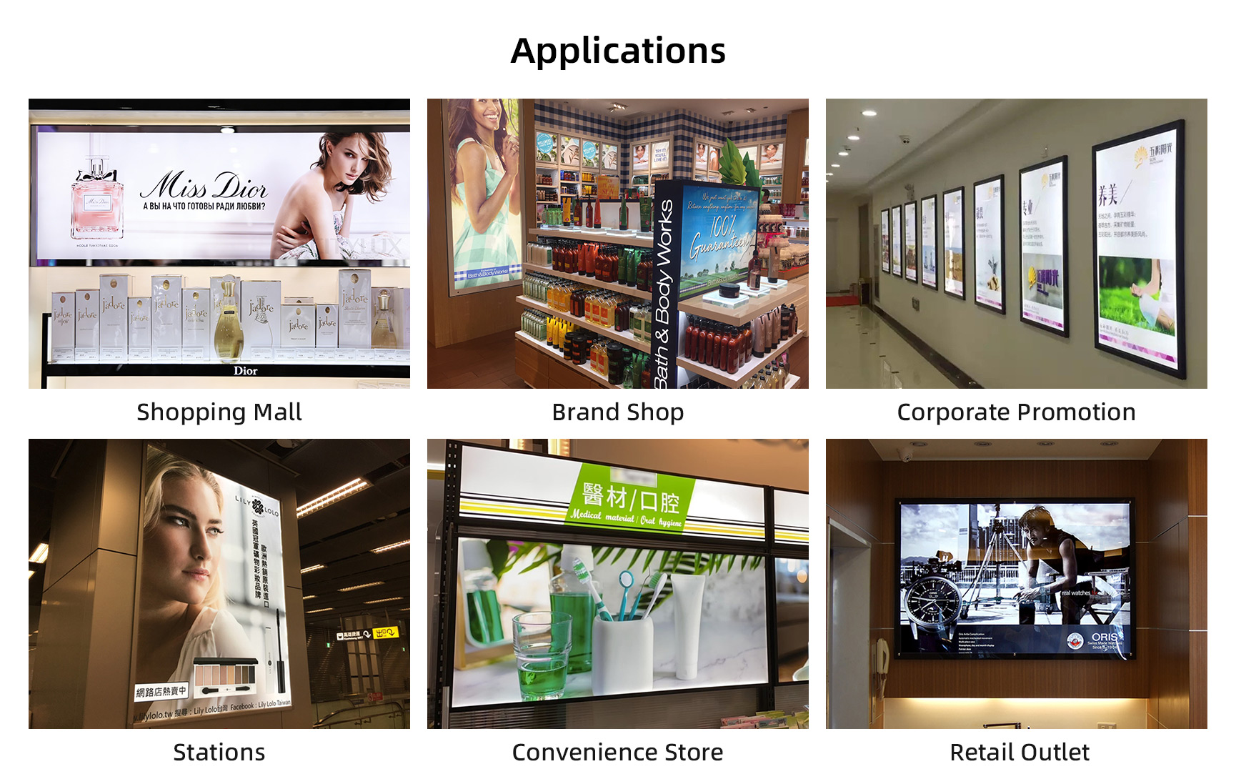 We provide both static and digital signage solutions for retailers. One of our most popular offerings is LED light boxes, available in a variety of styles, including: